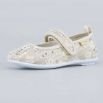 Праздничные текстильные туфельки золотистого цвета для девочки Верх выполнен из гипоаллергенного синтетического материала. Подкладка и стелька - из 100% натурального хлопка. Он позволяет ножкам дышать и отводит образующуюся во время носки влагу. Липучки-велькро позволяют быстро обуваться и разуваться. Подошва из микротекса - гибкая, легкая и амортизирующая. Модель анатомически правильная: имеет небольшой каблучок/танкетку, подсводник (супинатор), в меру жёсткий задник и круглый носок. Такая научно-обоснованная конструкция положительно влияет на правильное развитие стоп и всего опорно-двигательного аппарата. Сделано в России.